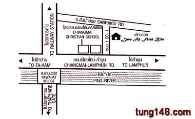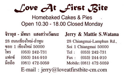 แต่ต้องขอบอกไว้ก่อนนะครับว่า ร้าน Love At First Bite ปิดวันจันทร์ ถ้าใครจะไปเช็ควันให้ดีๆนะครับ วิธีไปก็ไม่ยากดูแผนที่ร้าน ได้ที่ด้านล่างเลยครับ ถ้าใครไปแล้วร้านผิดมีหวังได้หา ที่พักเชียงใหม่ อยู่สักคืนแน่เลย (ล้อเล่นๆๆ)