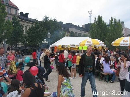 หลังจากลงรถไฟจากสถานี Kista มาลงที่ สถานี Kungsträdgården ซึ่งเป็นสถานีปลายทางของสายสีน้ำเงินพอดี บังเอิญว่าวันนี้มีงาน Thailand Festival จัดขึ้นที่บริเวณ Kungsträdgården ใจกลางกรุง Stockholm เลยก็ว่าได้ เราไปดูกันดีกว่าว่าเค้าจัดงานอะไรกันบ้าง