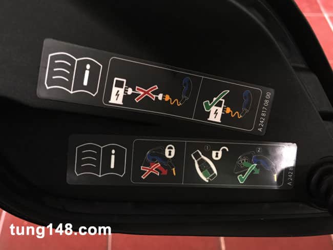 3. เสียบสายชาร์จให้ลงล็อก แนะนำให้เสียบปลั๊กที่ผนังก่อนเสียบเข้าตัวรถ เพื่อป้องกันการ Spark