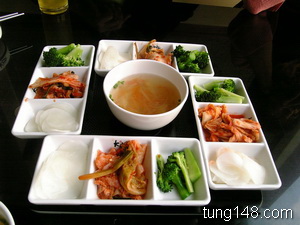 กิมจิ, บล็อคโคลี่คลุกน้ำมันงา, และแตงกวาดอง
