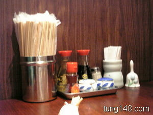 เครื่องปรุงต่างๆ ที่อยู่บนโต๊ะ มาตรฐานตามร้านราเมนทั่วไป