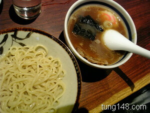 ขอพูดถึงเจ้า Tsukemen นิดนึง Tsukemen ก็คือ ราเมนที่จะแยกน้ำซุบมาต่างหาก โดยตัวราเมนจะเย็น ส่วนน้ำซุปจะมาแค่อุ่น ๆ เราต้องเอาเส้นราเมน ไปจุ่มในน้ำซุป กินทีละคำๆๆ