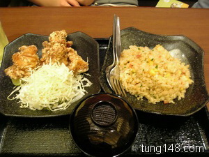 จานนี้คือ ข้าวผัดกับคาราเกะ (Karaage wtih Fried rice set) 160 บาท