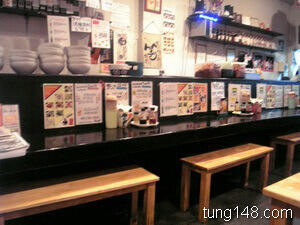 เข้าไปถึงจะเจอเจ้าของร้านอยู่ด้นซ้ายกำลังปรุงราเมนอย่างแข็งขัน พร้อมกันเสียงต้อนรับ ทักทายดังลั่นเป็นภาษาญี่ปุ่น พร้อมกับเสียงโวยวายจากพนักงานที่อยู่ในร้าน ใครมาครั้งแรกอาจตกใจได้