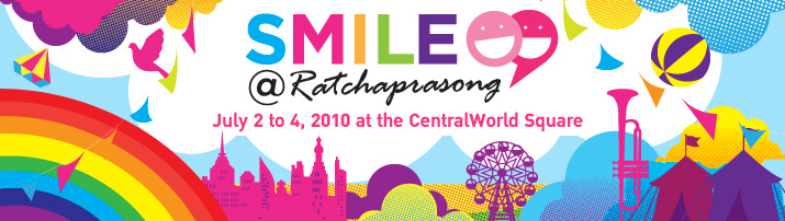 ถึงเวลาแล้วที่จะคืนสีสัน ให้กับราชประสงค์อีกครั้งกับอีเวนท์สุดยิ่งใหญ่ SMILE at Ratchaprasong งานที่จะรวมใจคนราชประสงค์ให้กลับคืนมาอีกครั้ง โดยความร่วมมือของการท่องเที่ยวแห่งประเทศไทย บริษัท เซ็นทรัลพัฒนา จำกัด (มหาชน) และสมาคมผู้ประกอบวิสาหกิจย่านราชประสงค์ ด้วยกิจกรรมบันเทิงหลากหลาย ที่จะสร้างรอยยิ้มให้เต็มพื้นที่ราชประสงค์อีกครั้ง งานที่จะรวมใจคนราชประสงค์ให้กลับคืนมาอีกครั้ง ณ ลานหน้าห้างเซ็นทรัลเวิลด์ 2-4 ก.ค. 2553 นี้ เวลา 10.00-24.00 น.