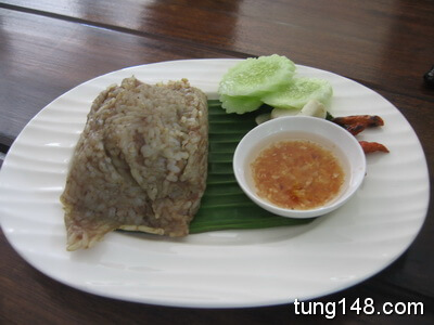 ข้าวเงี้ยว (Khao Ngyao) Streamed rice mixed with pork in banana leaves ราคา 15 บาท