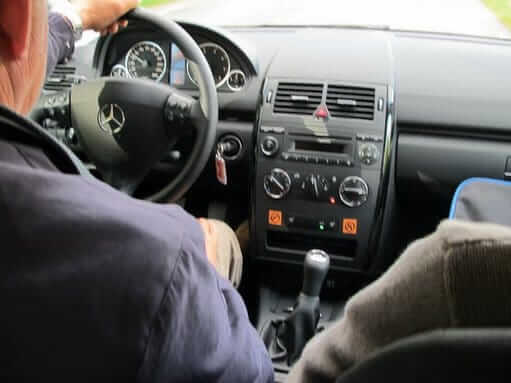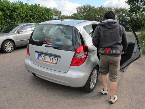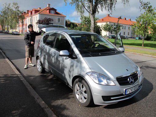 Mr.Hasse กำลังขับ Mercedes-Benz คู่ใจไปช่วยเปลี่ยนยาง จักรยานที่จอดไว้หน้าห้องสมุด