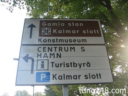 ตรงไป Kalmar slott เลี่ยวซ้ายเข้า Centrum (ตัวเมือง)