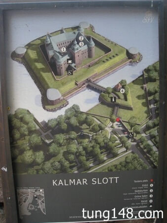 จากภาพจะเห็นว่า Kalmar slott จะมีป้อมอยู่ 4 มุมของปราสาทเพื่อป้องกันข้าศึกและโจรสลัดที่มาทางทะเล