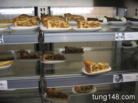 ที่เห็นชิ้นใหญ่ๆ คือ Äppelkaka med vaniljsås หรือ Apple cake with custard นั่นเองราคา 19 kr