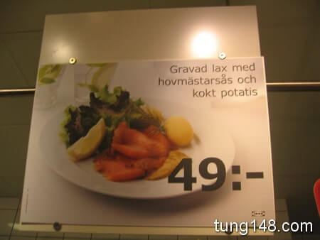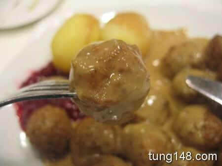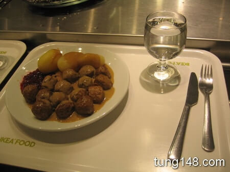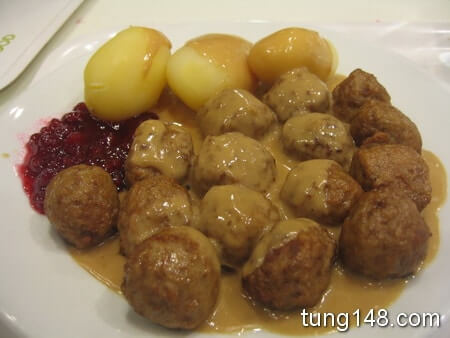 จานนี้ของขึ้นชื่อของ IKEA คือ Meatball (Köttbullar) กับ มันฝรั่ง แต่แปลกตรงที่เค้าใส่ Lingonberry jam มาให้ด้วย ไม่รู้ว่าเข้ากันไหมเนี่ย ต้องลองกินดู