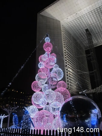 มีต้นคริสต์มาสต้นใหญ่ตั้งอยู่หน้าตึก La Grande Arche