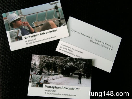หยิบนามบัตรออกมาดูมีอยู่ 2 แบบ ตามที่สั่งไป คุณภาพกระดาษพอใช้ได้เลยทีเดียว
