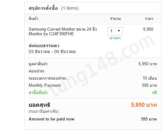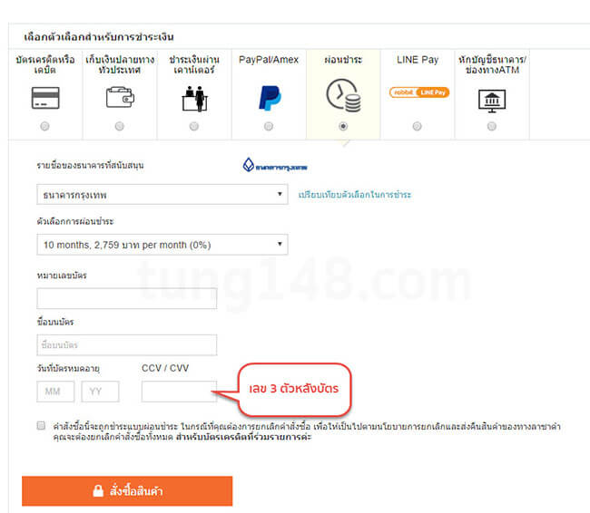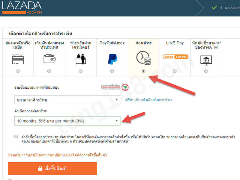 ขั้นตอนที่ 2 เลือกวิธีชำระสินค้า โดยคลิกที่ ผ่อนชำระ
