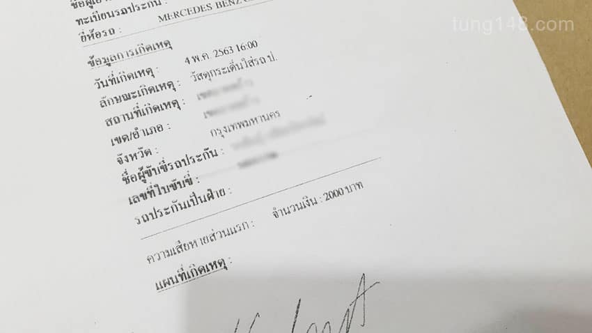 จะเห็นได้ว่าในใบเคลม มีการระบุลักษณะเกิดเหตุตามที่ได้โทรไปแจ้งตอนแรก